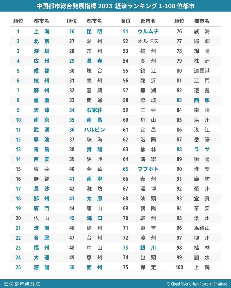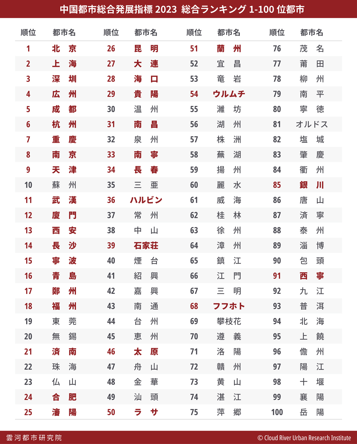 総合ランキングについて、詳しくは「【シンポジウム】メガロポリス発展を展望:中国都市総合発展指標2023」を参照。