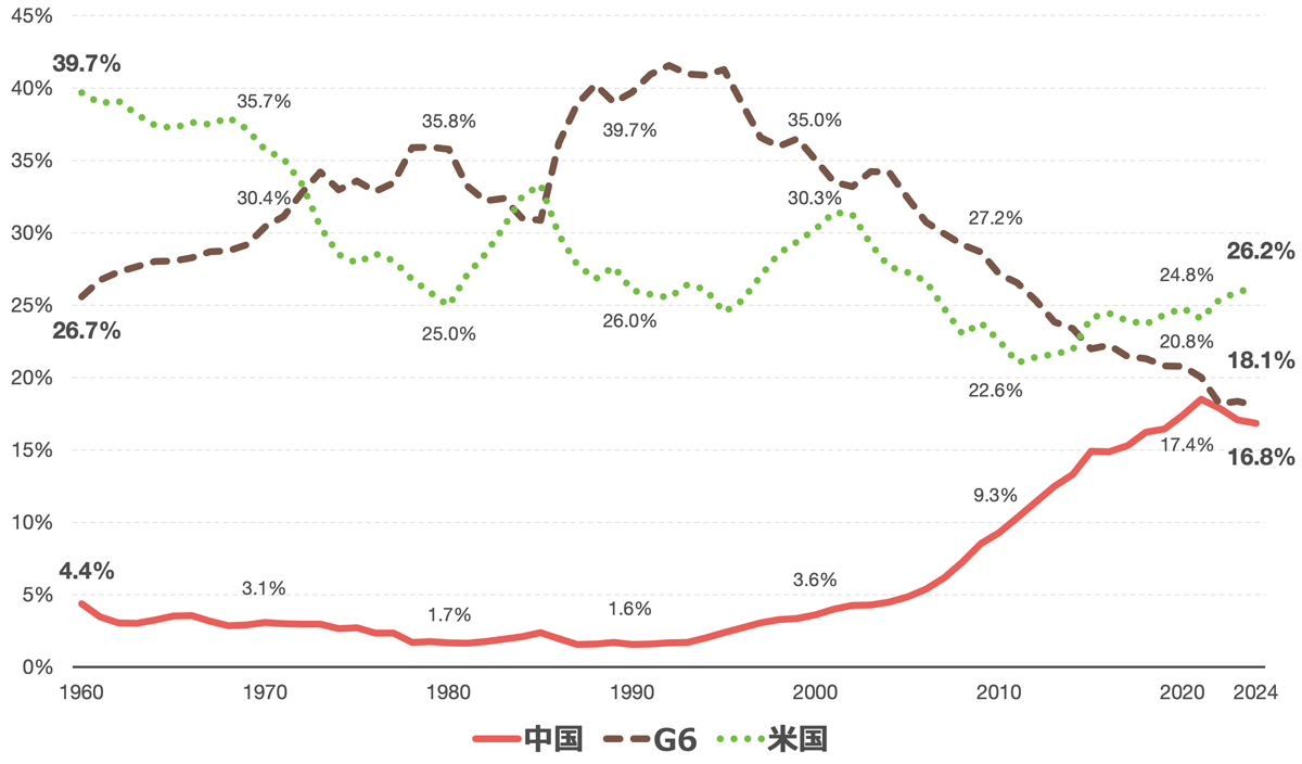 図4 世界GDPにおけるG6比率が急低下:米中二頭体制に