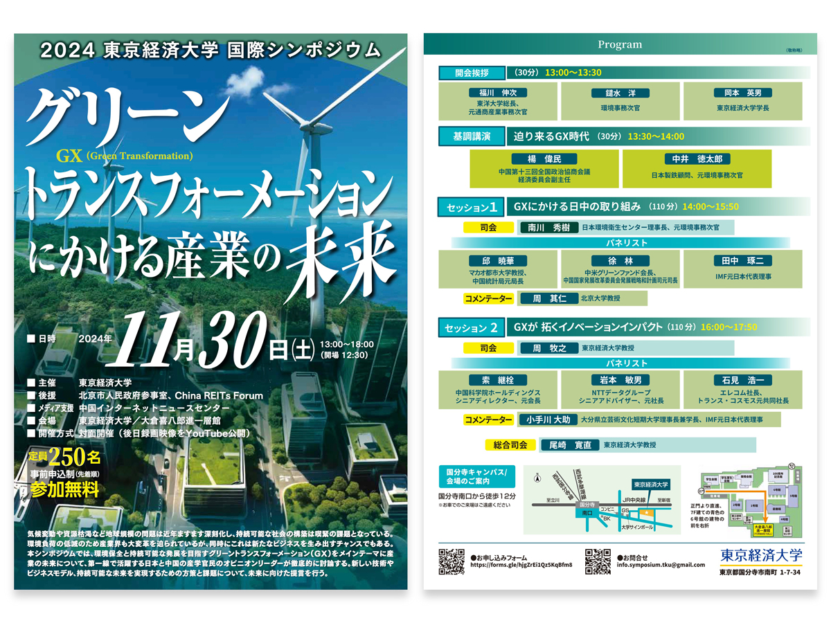 周牧之・索継栓・岩本敏男・石見浩一・小手川大助:東京経済大学国際シンポジウム「グリーントランスフォーメーションにかける産業の未来」セッション2「GXが拓くイノベーションインパクト」