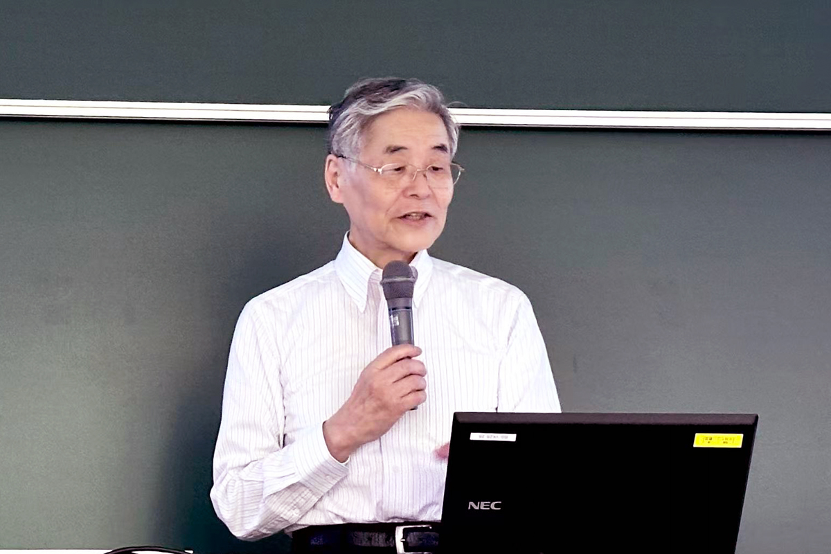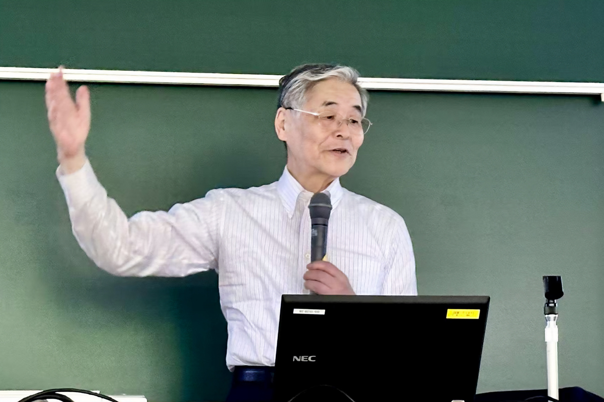 講義を行う鈴木正俊 ミライト・ホールディングス元社長
