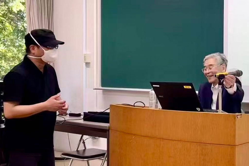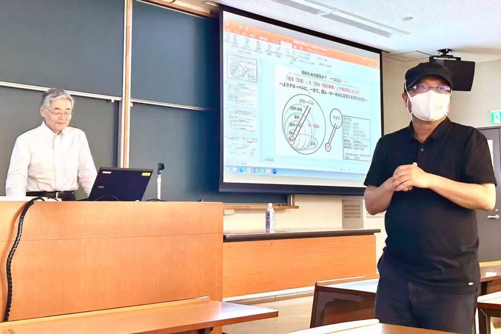 講義を行う鈴木正俊 ミライト・ホールディングス元社長(左)と周牧之 東京経済大学教授(右)