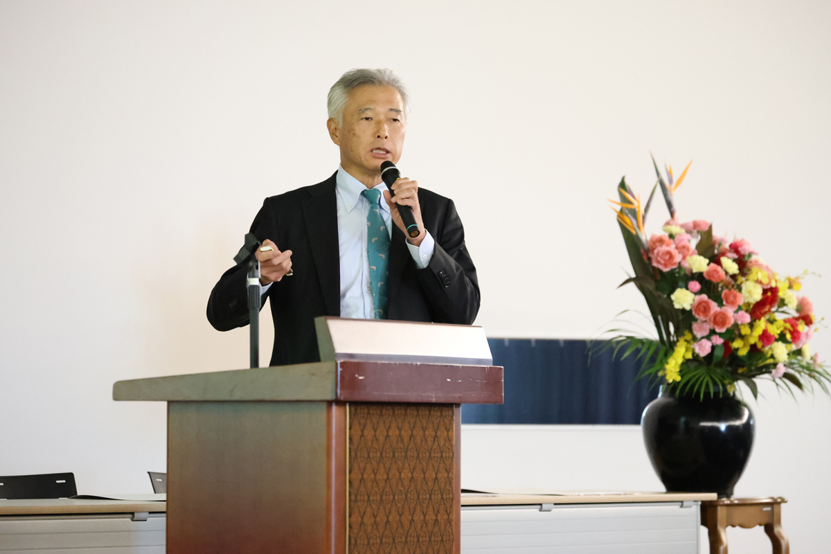 講義を行う鈴木正俊 ミライト・ホールディングス元社長